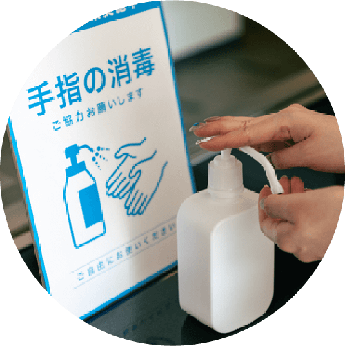 川之江ビジネスホテルでは安全・安心にご旅行をお楽しみいただくため、新型コロナウイルス感染防止として消毒液の設置や館内の除菌消毒などの取り組みを行っています。
