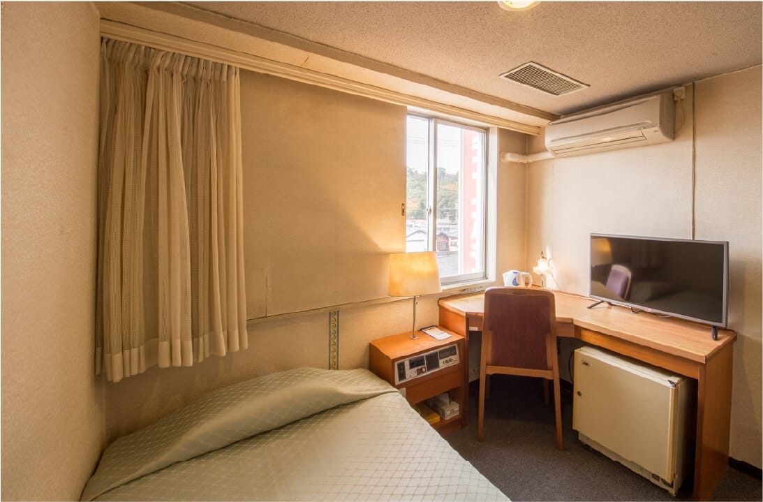 角部屋で普通のシングルより広めの大きめベッド完備!